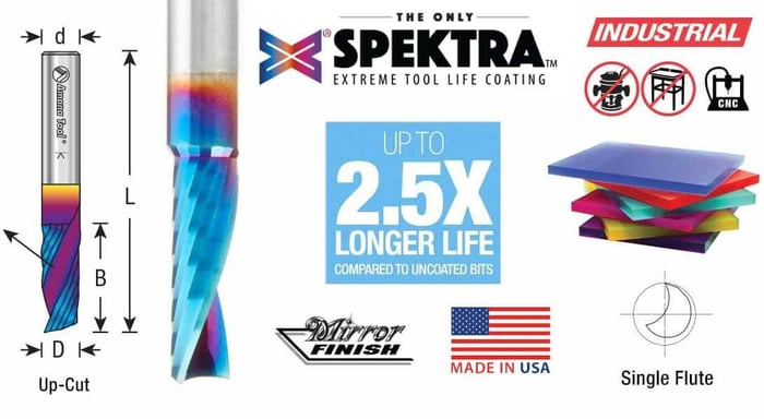 Amana Tool 51404-K CNC Spektra™ beschichtete Vollhartmetall-Spiralfräser mit einer Schneide, Fräser für Kunststoff mit spezieller, einzigartiger Hartmetall- und nACo®-Nanokompositbeschichtung für längere Lebensdauer bei Kunststoffen und anderen Materialien. Die Router-Bit-Geometrie, die am besten funktioniert